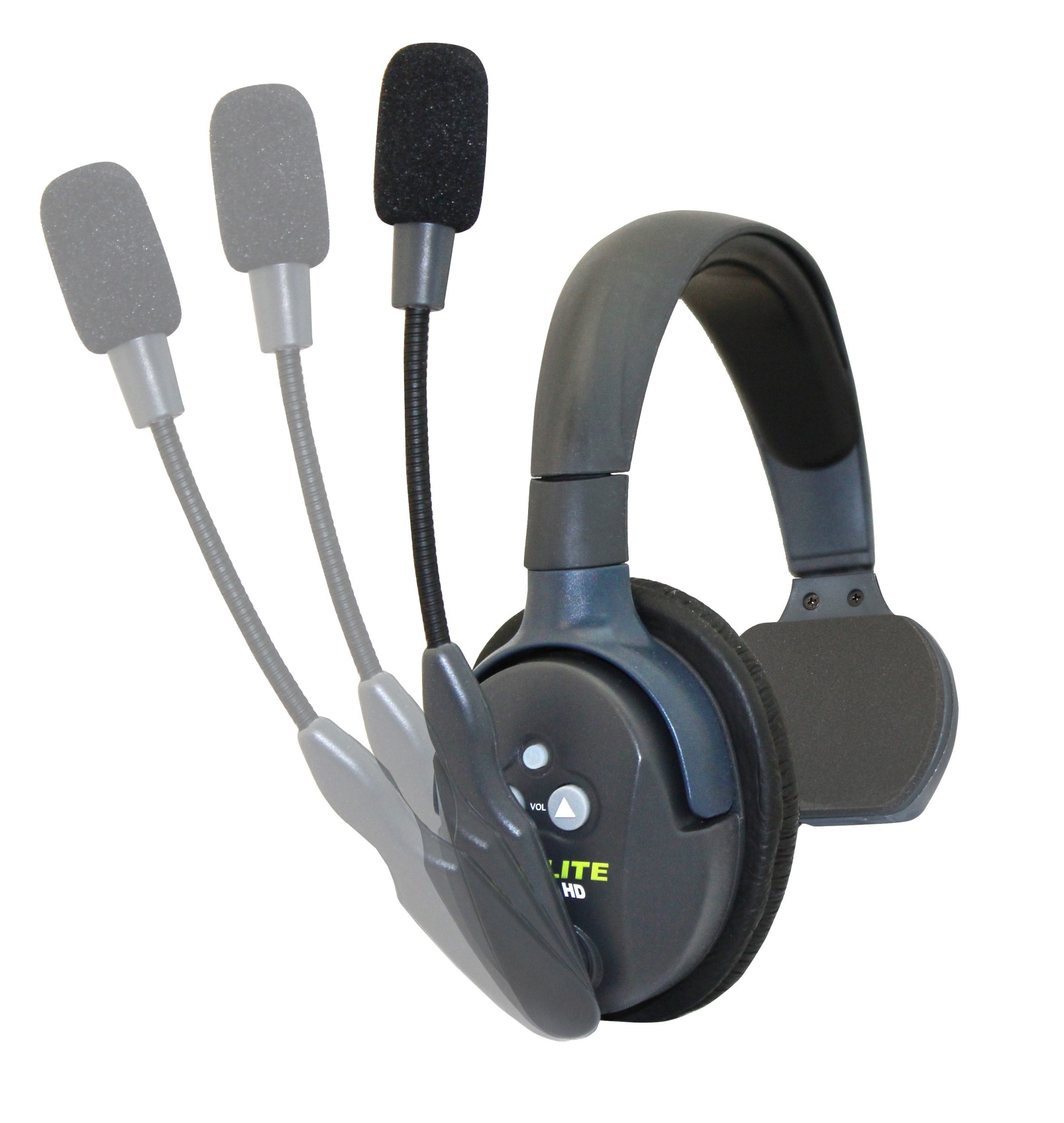 UltraLITE™ headsets eclipse all other full duplex wireless for performance and convenience because the transceiver is built right inside the ear cup. This self-contained, “All in One” design eliminates headset wires and even belt worn radios. They provide simultaneous talk, two way voice communication for users that need to work with their hands yet also require one ear free to listen to what is going on around them. The mic boom arm swivels 270º so the headset can be worn on the left or right. Microphone mutes when in the up position.